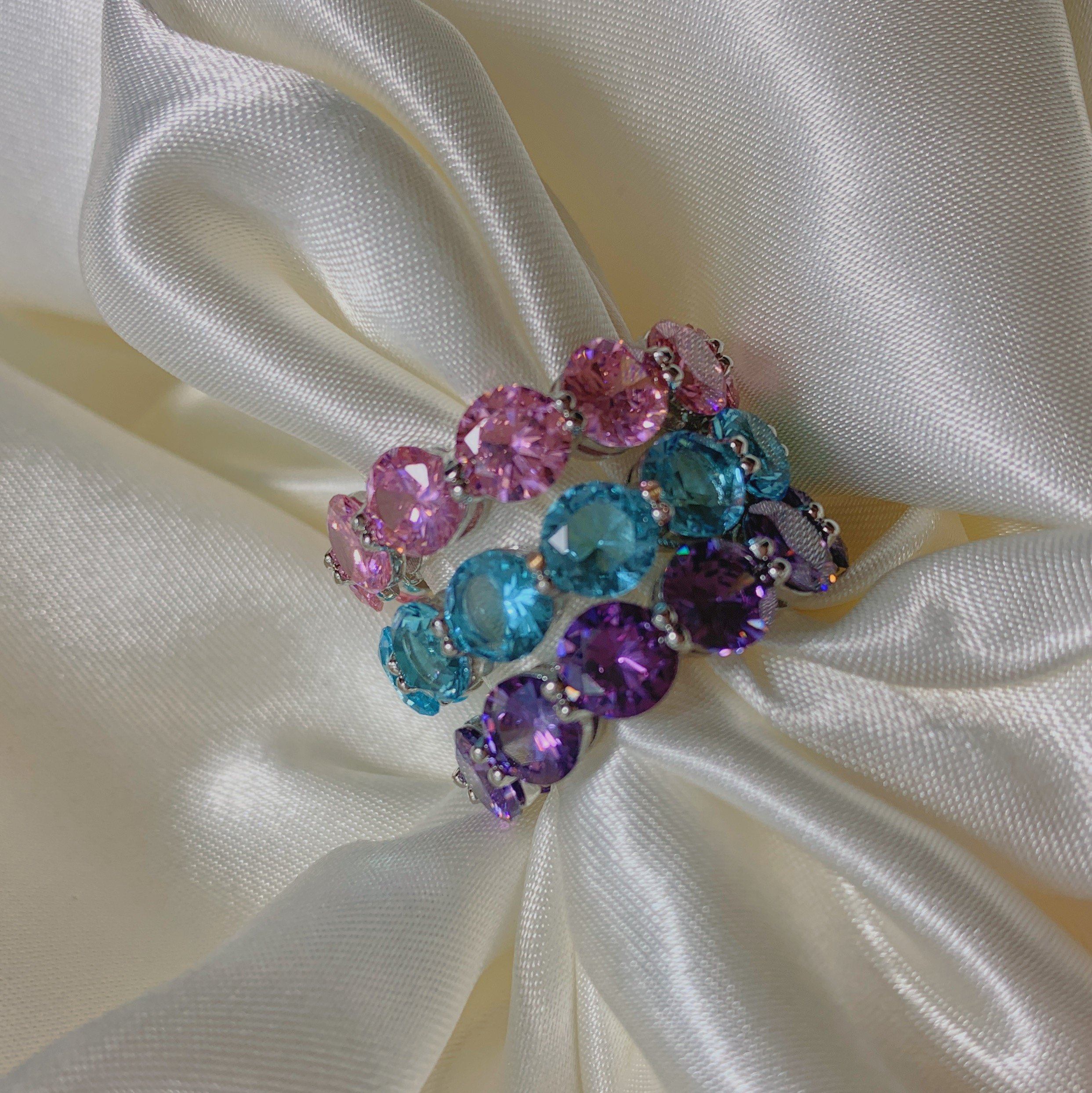 Rose tinted all the way. Created with 6mm briliant cut cubic zirconia in a romantic baby pink colour. Perfect when worn individually or stacked with other Brilliance Rings.