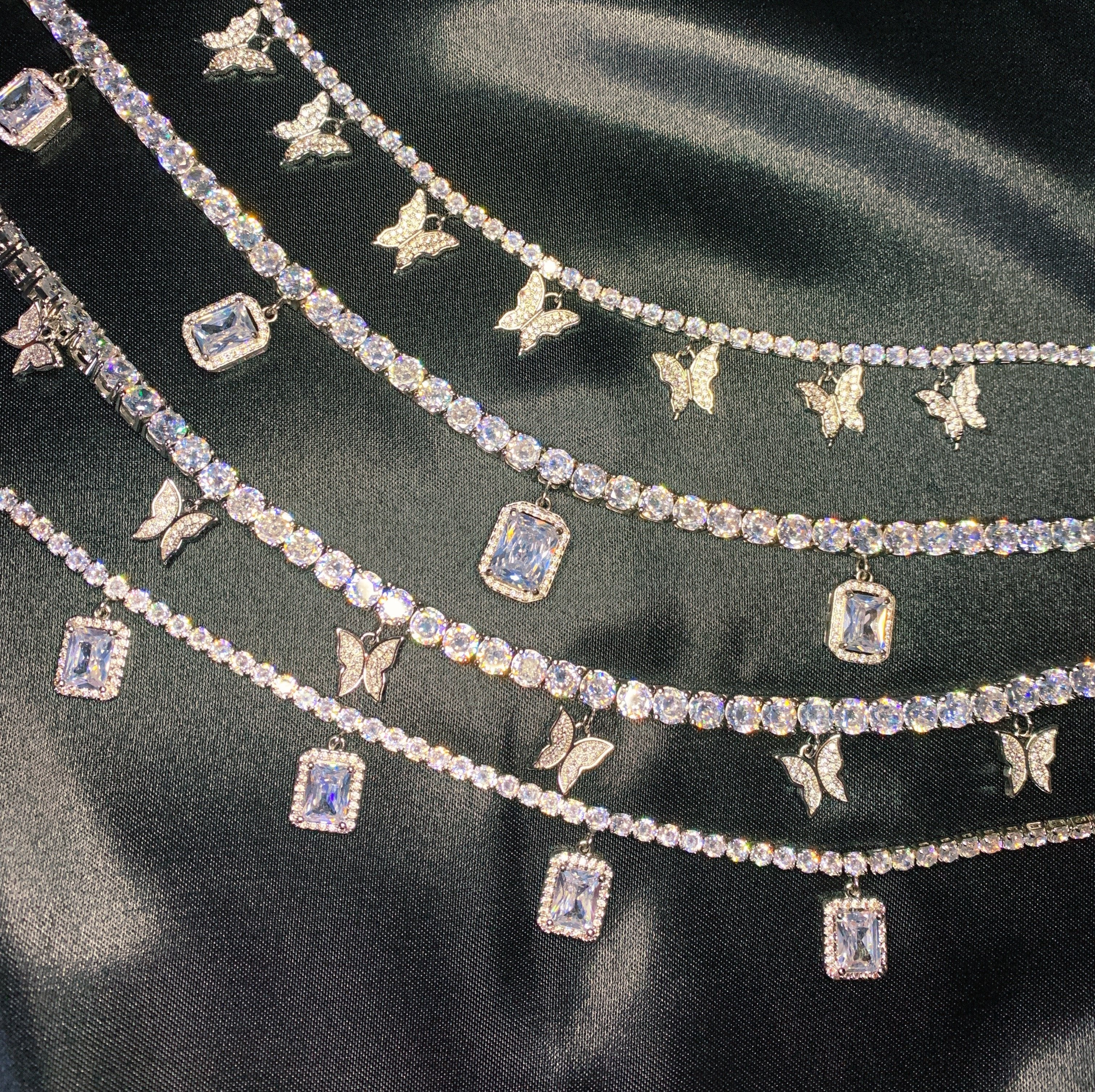 Created with Brilliant and Emerald Cut Cubic Zirconia. This tennis chain necklace is a lighter version of the Charmed Chain Luxe, with the only difference being the thickness of the chain.