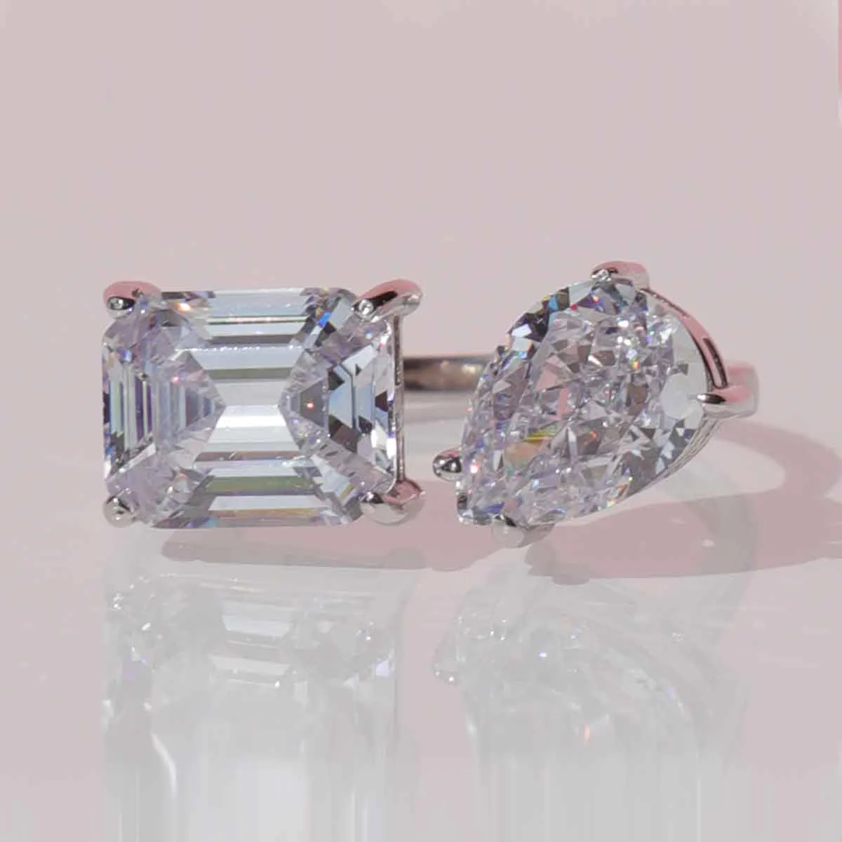 Get the best of both worlds with this luxe Sterling Silver ring. The Emmy Ring features pear and emerald-cut stones to bring you the ultimate sparkle.