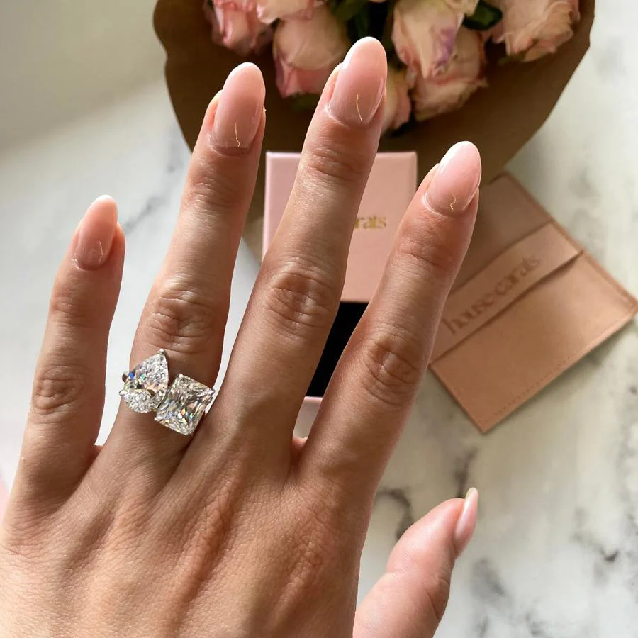 Estee Ring is our most impressive stone combination we have released to this day. Created with Crushed Ice Diamond Simulants, this ring is one you won't be able to take your eyes off.