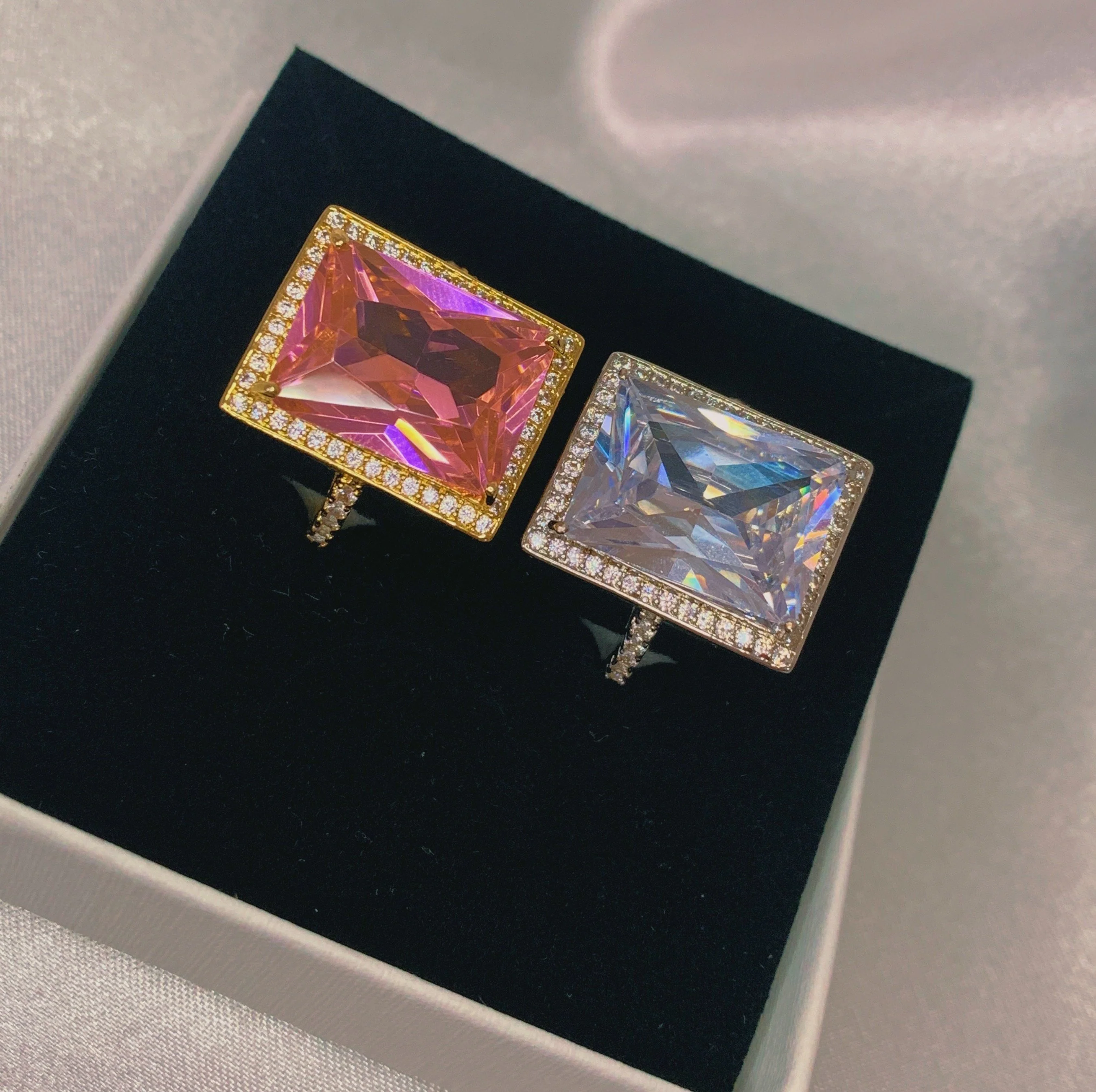Some serious sparkle has arrived. This luxe ring features a large Radiant cut centerpiece, in the company of Brilliant Cut stones to give it maximum sparkle.